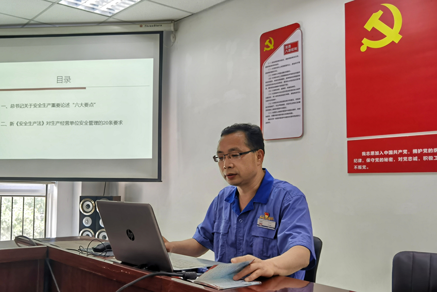 2022627日下午,西安煤機(jī)公司紀(jì)委書(shū)記鞏書(shū)記冒著炎炎酷暑來(lái)到煤專公司,為煤專支部全體黨員和生產(chǎn)管理人員、一線班組長(zhǎng)上了一堂關(guān)于安全生產(chǎn)普法講座的專題黨課。